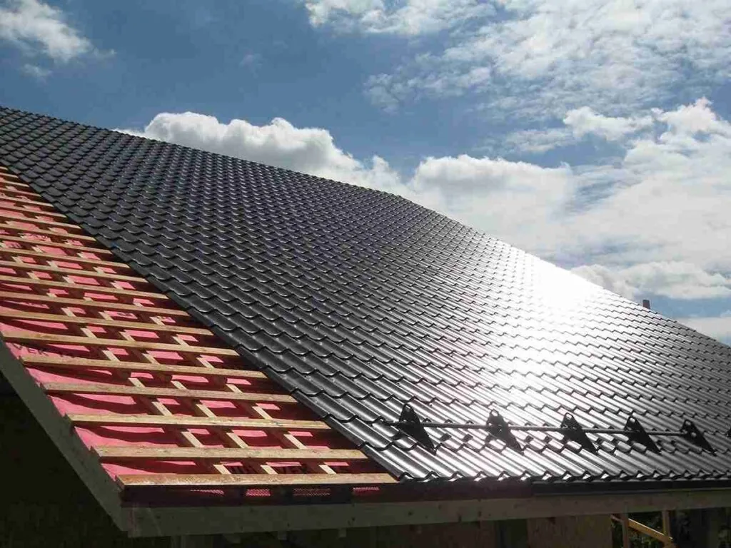 Укладываем новое покрытие (металлочерепица, гибкая, фальцевая или другая кровля), устанавливаем доборные элементы и водосточную систему.